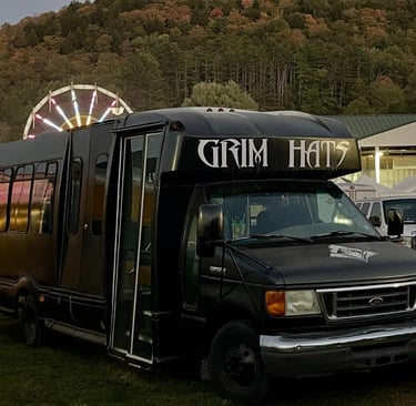 One of the highlights of our event season is the Grim Bus—a converted 2006 Ford E-450 transit bus turned mobile shop and party hub. The Grim Bus travels to major motorcycle rallies, biker festivals, and custom apparel shows, bringing our latest limited edition hats, hoodies, t-shirts, and accessories directly to you. Look for the Grim Bus at iconic events like Laconia Bike Week, Biketember Fest, and more.